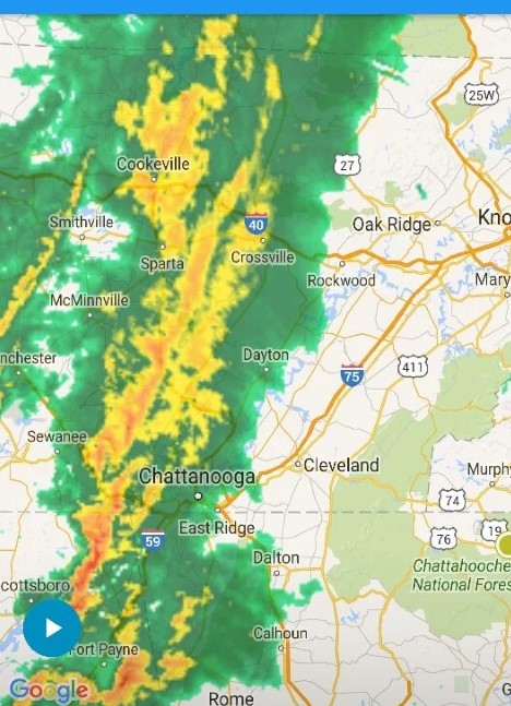 One of the reasons we didn’t stay at a campsite tonight. We’re in the Chattahoochee Forest, so you can see the mess heading our way.